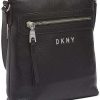 This leather small sized DKNY bag is a sleek, stylish Crossbody bag with a silver-tone exterior hardware & 1 zip pocket.